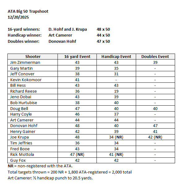 NSCA Shooting Results