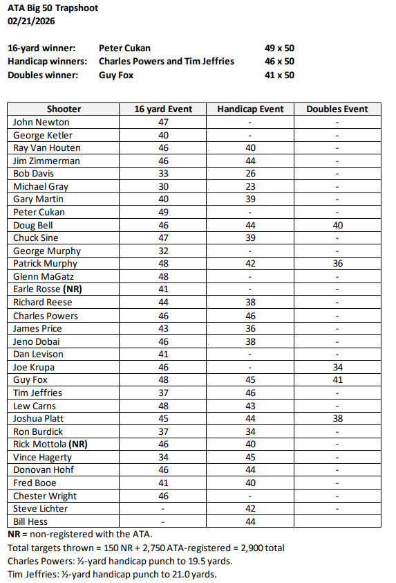 NSCA Shooting Results